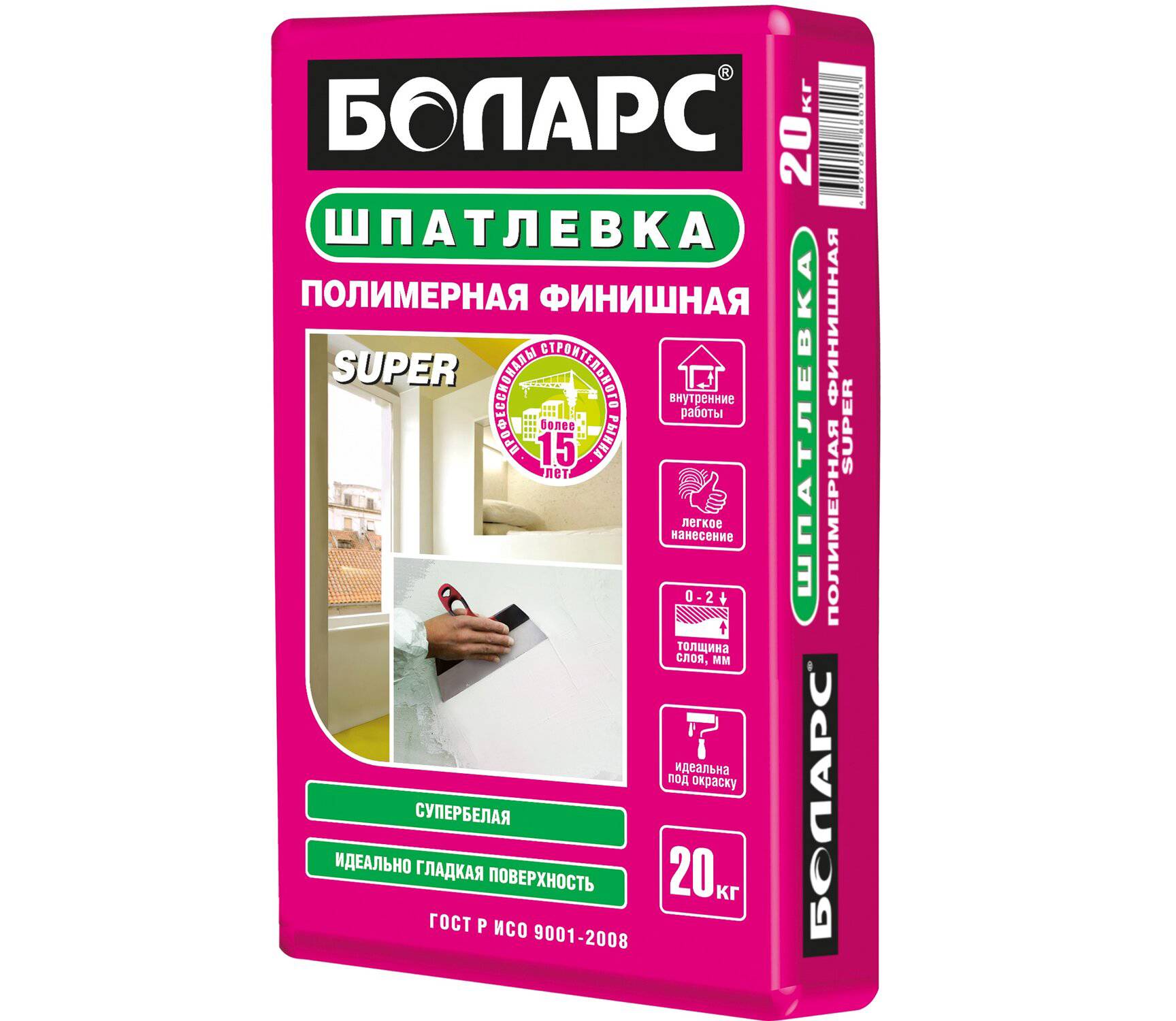 Боларс финишный тип шпаклевок, водостойкий. Отличается высоко-прочностным уровнем на сжатие, морозоустойчивый. По техническим характеристикам отмечают выдержку до 50 циклов разморозки и заморозки.