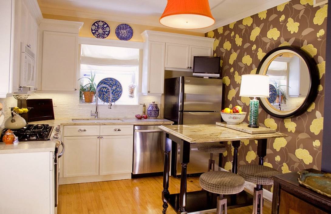 И в зоне готовки, и возле обеденного стола обои могут подвергаться воздействию влаги.