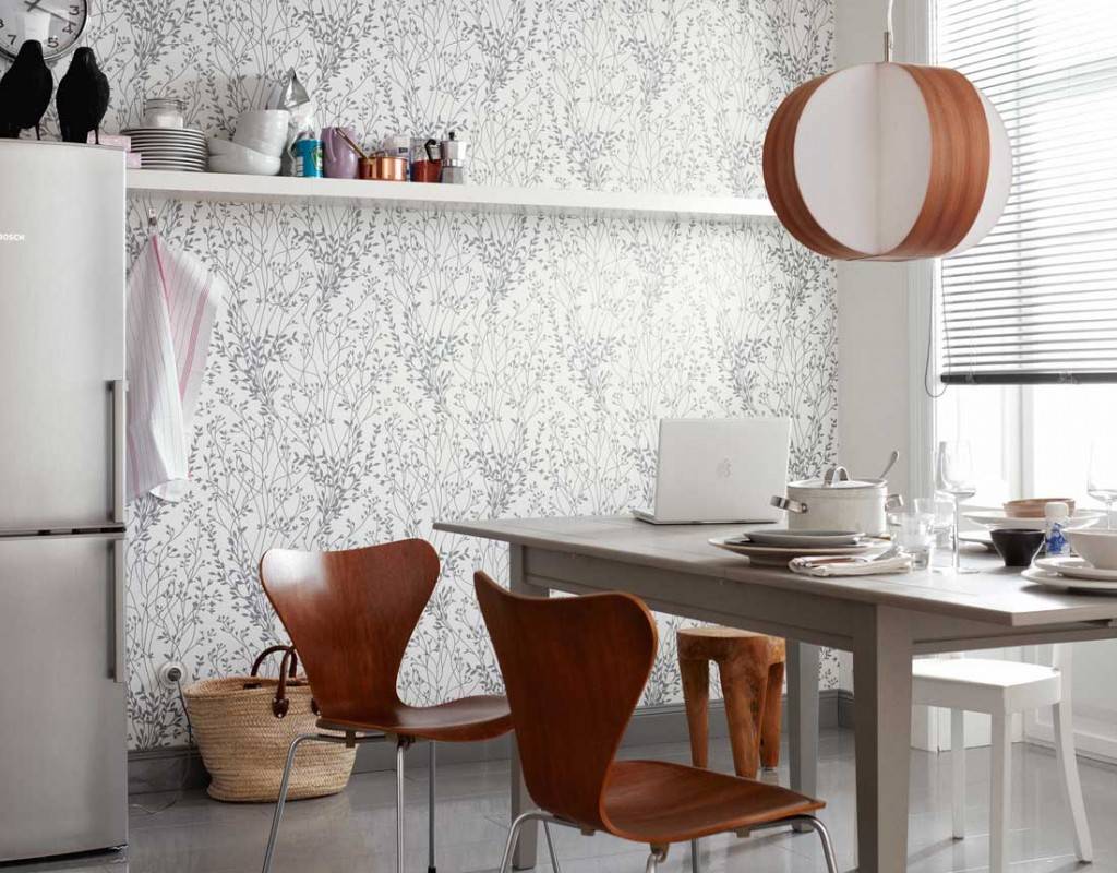 Что касается мест размещения в интерьере кухни — супермоющиеся огнестойкие подходят даже для фартука, но не являются самым лучшим вариантом для этой зоны. Если вы все же хотите оставить обои между шкафами кухонного гарнитура — защитите их прозрачными скиналями.