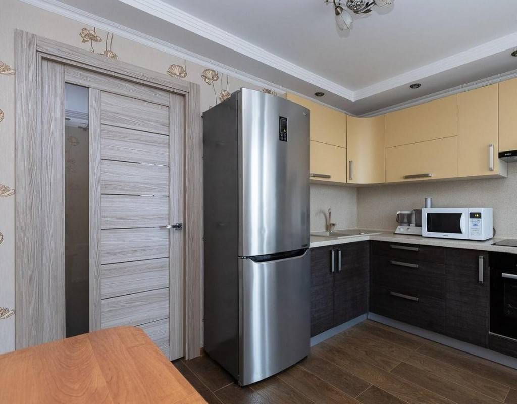 Даже если на дверцах нет выступающих деталей, но у вас на потолке установлены накладные светильники, то фасад будет упираться в светильник.