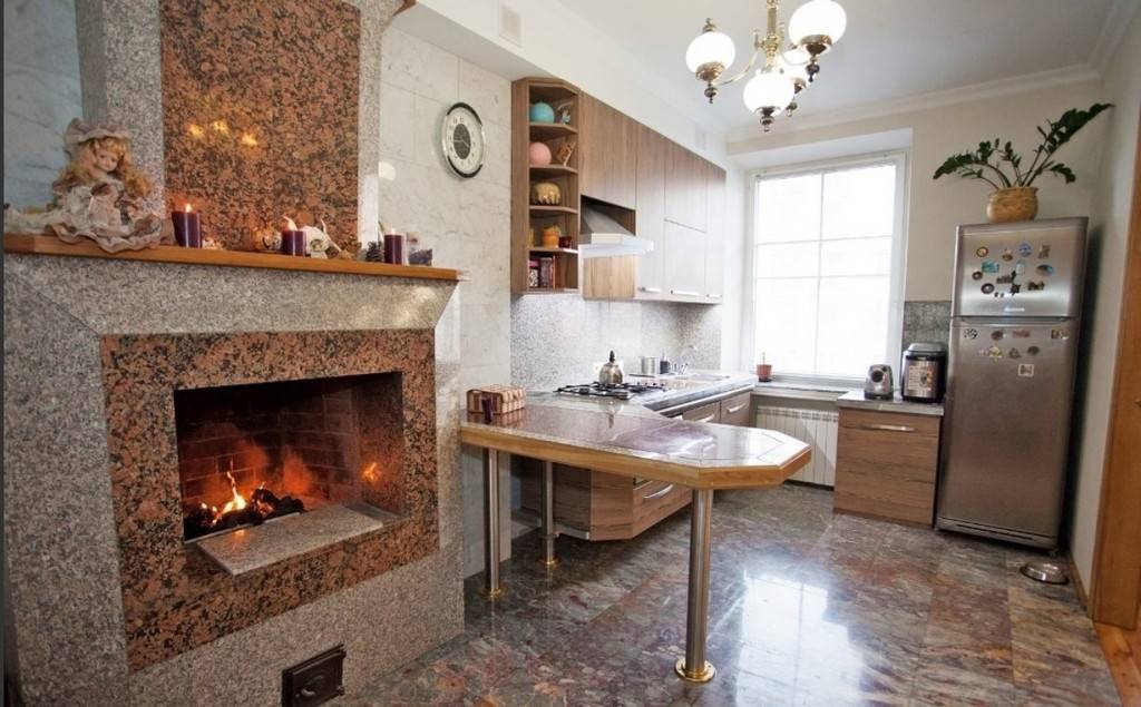Что касается кухонного фартука, то для его создания также может быть использовано стекло, керамическая плитка или натуральный камень. Отлично смотрится кирпичная кладка, которая для практичности обрабатывается специальным водоотталкивающим составом.