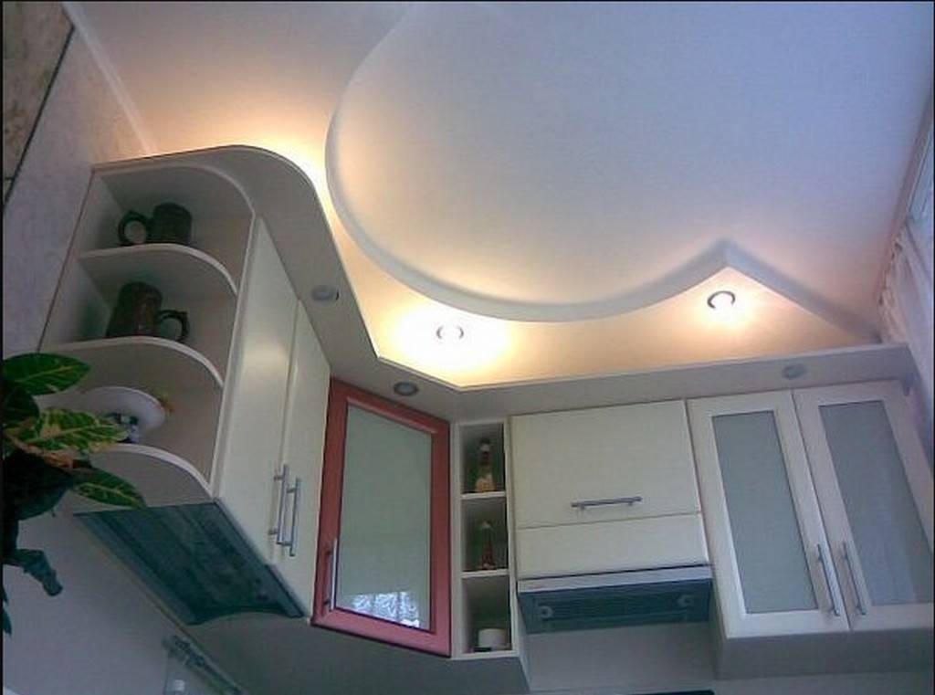 Многие считают, что недостаток этого материала заключен в сложности монтажа (по сравнению с реечным или пластиковым вариантами). За один день конструкцию из гипсокартона не изготовить. Поэтому целесообразнее в этом случае обратиться за помощью к профессионалам. Люди, имеющие опыт такой работы, создадут оригинальный дизайн потолка на кухне, который будет выглядеть очень современно.