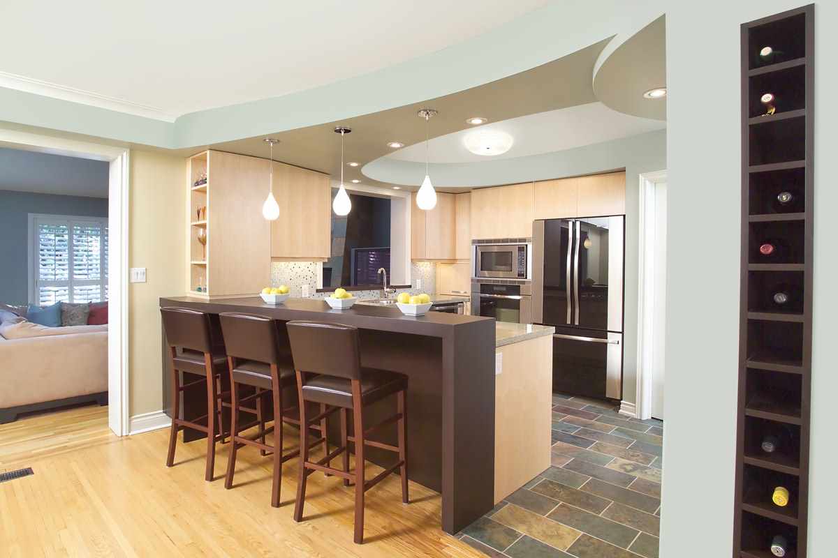 Для зоны готовки и обеденной зоны подберите разные источники освещения