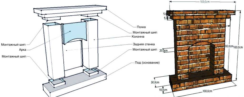 Возведение декоративного или условного портала для камина своими руками – достаточно простой технологический процесс. Возводится каркас из металлического профиля или деревянных брусков, сверху зашивается гипсокартоном по выкройке конструкции. Для обшивки применяют вырезки из целого листа, который имеет размеры 1,2 – 1,3 метра в ширину и 2,5 – 4,8 метра в длину.