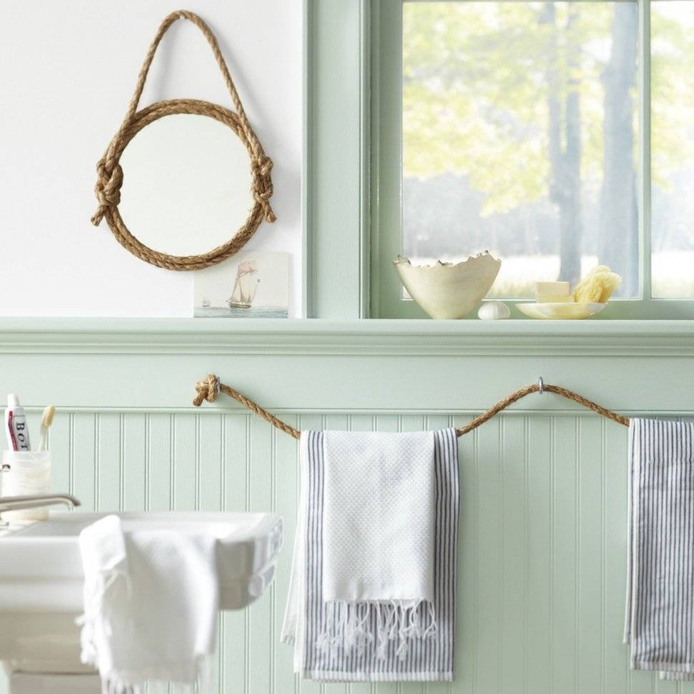 Толстая веревка легко выступит в роли подхвата для льняных штор, тонкой — можно обернуть цветочный горшок или сделать креативную ширму. Из верёвки также выйдут: колониальная рама для зеркала, крючки для полотенец или коврик в морском стиле.