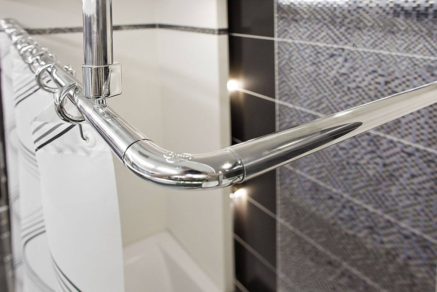 Если ванна или душ слишком маленькие или узкие для того, чтобы вы могли комфортно встать, не натыкаясь на мокрую занавеску, подумайте об использовании удлинителя. Угловые стержни согнутые посередине способны оттолкнуть занавес от вас, предоставляя больше места для купания.