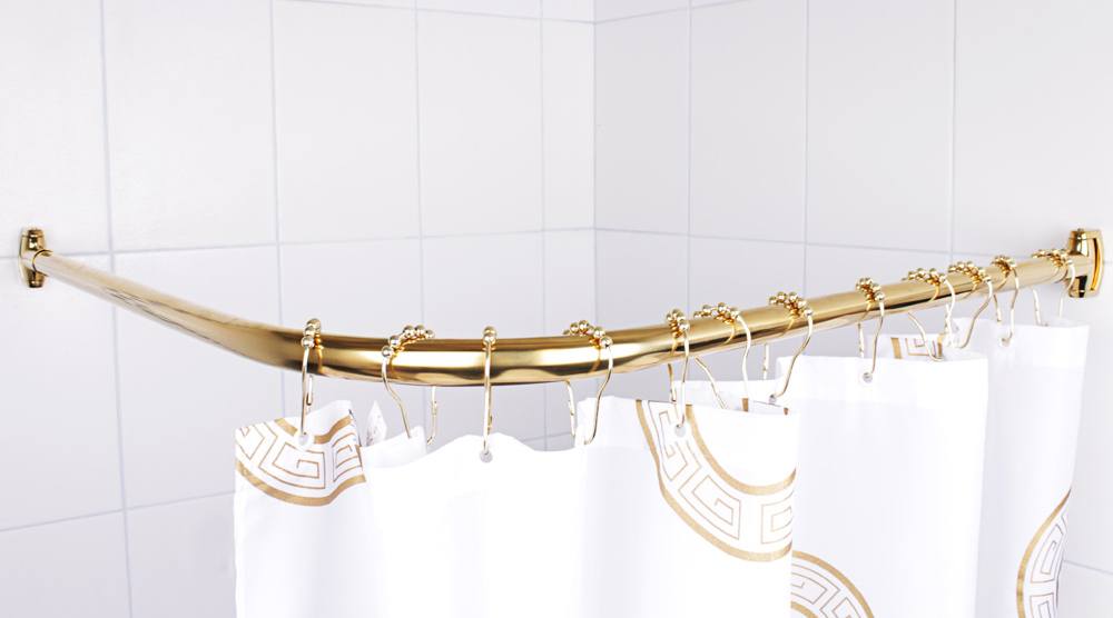 Все большую популярность с каждым днем набирают телескопические штанги, выполненные в виде дуги. Способ их монтажа позволяет не испортить стены в помещении, но при этом гарантирует надежную фиксацию шторки для душа. Однако при установке полукруглого телескопического карниза может потребоваться дополнительная поддержка в виде потолочного крепления.
