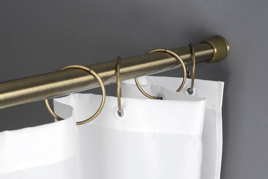 Если вы не хотите заморачиваться с долгой, нудной установкой, можно приобрести карниз с телескопической конструкцией. Встроенная пружина позволяет менять длину держателя, поэтому ошибиться с размерами затруднительно. Такая модель подойдет для стен, выполненных из плитки, пластиковых панелей, кирпича, бетона.