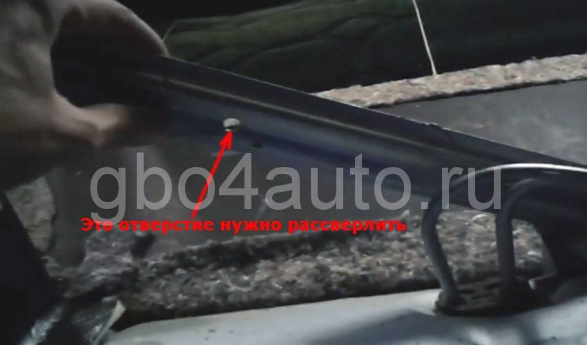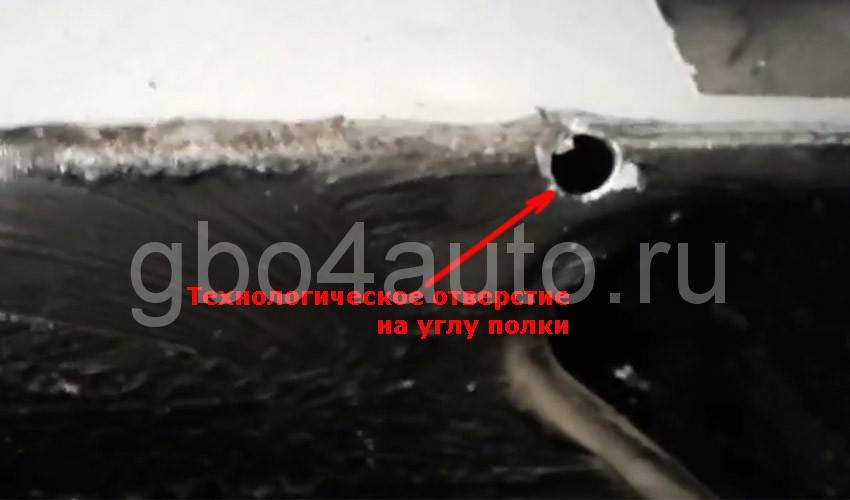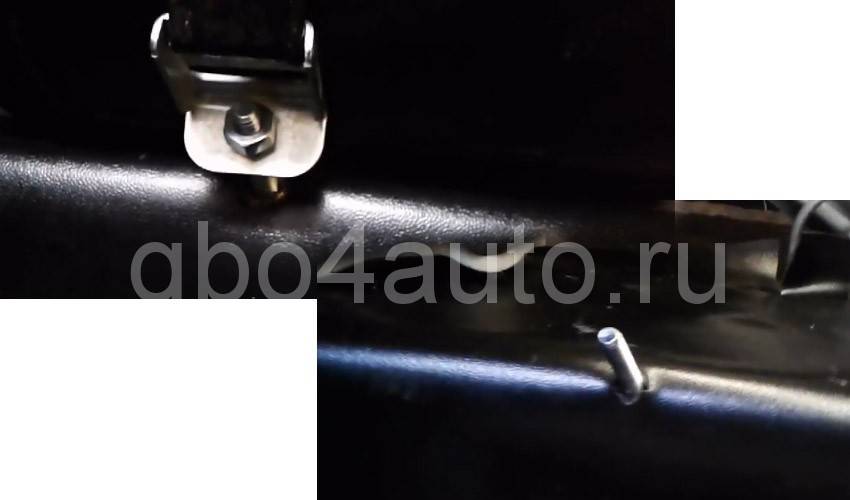 Между багажным отделением и салоном авто есть металические перемычки, в которых уже есть технологические отверстия. Они расположены на допустимом уровне, эти отверстия вполне можно использовать для крепления баллона. При необходимости отверстия можно рассверлить.