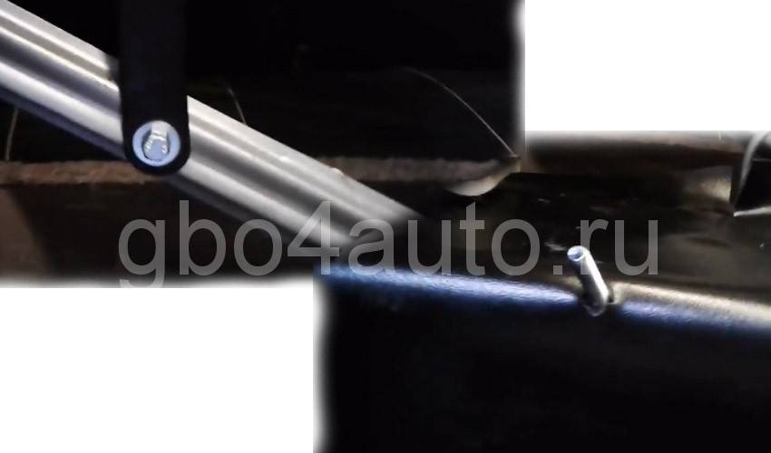 На днище автомобиля нужно будет просверлить два отверстия диаметром около 30 мм. Проделывать отверстия лучше всего фрезой по металу. В эти отверстия в последствии будут вставлены сапуны. Через них нужно будет проложить две магистрали – расходную и заправочную. Расходная, соответственно будет подведена к редуктору, заправочная к заправочному клапану на или под бампером.