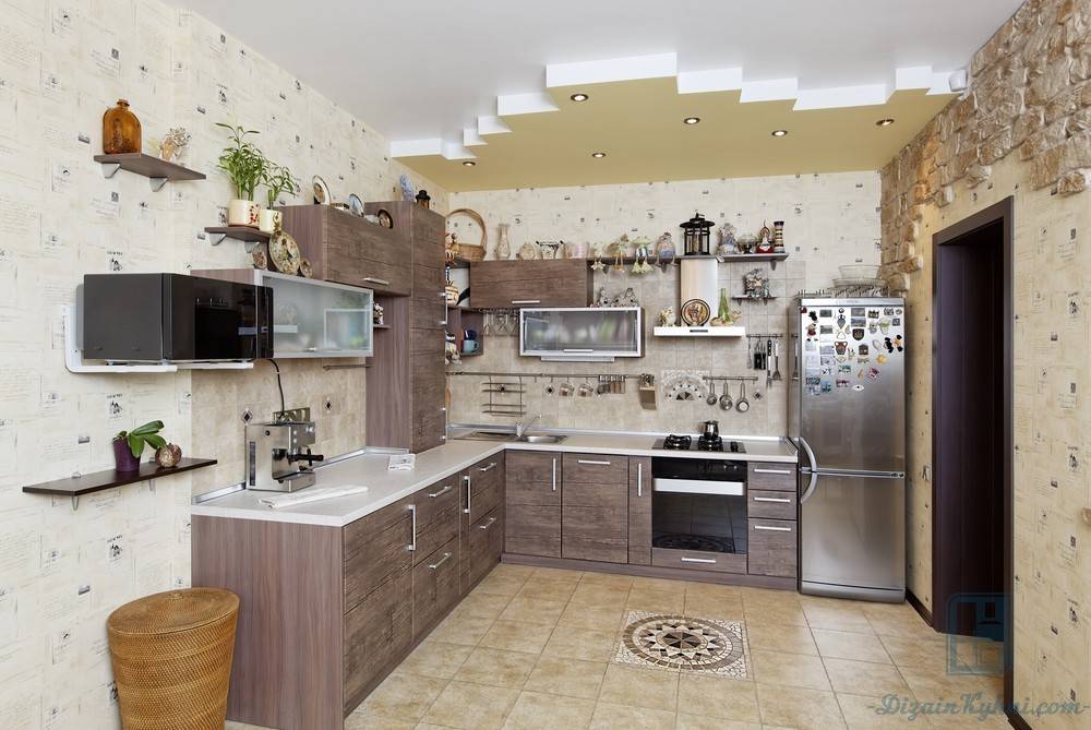 Минусы: сделанные из натуральных материалов бумажные или текстильные обои – не самый лучший для кухни вариант: они впитывают влагу, могут выцветать и рваться. Более долговечные и прочные, а также устойчивые к воде и жирам, моющиеся обои сделаны на основе синтетических материалов и недешево стоят.