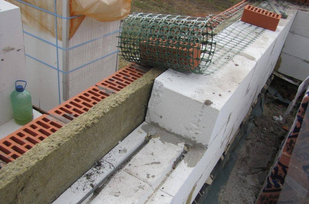 - Сохранение низких температур, что приводит к низкой скорости схватывания раствора. Конструкцию усиливают сеткой, чтобы даже затянувшееся строительство не привело к проблемам.