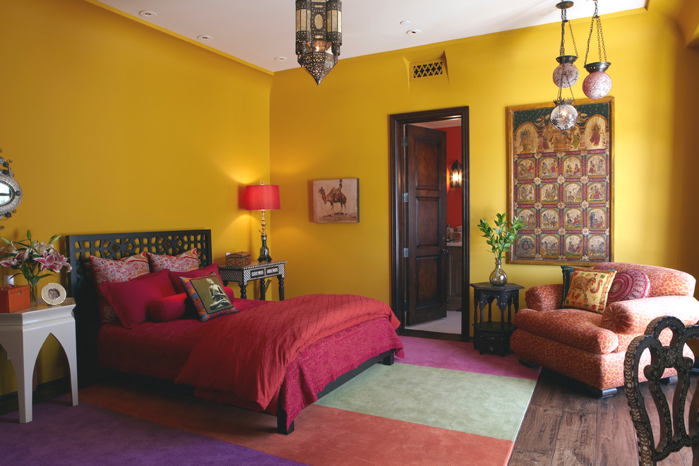 Важное место в оформлении дома занимает текстиль. Чем больше текстиля, тем богаче и интересней смотрится помещение. В это понятие входят ковры и циновки ярких цветов, тканевые ширмы и занавеси, разделяющие различные зоны дома