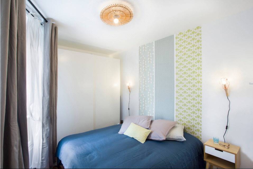 Комбинирование обоев в интерьере. Выделение спальной зоны тёмными обоями