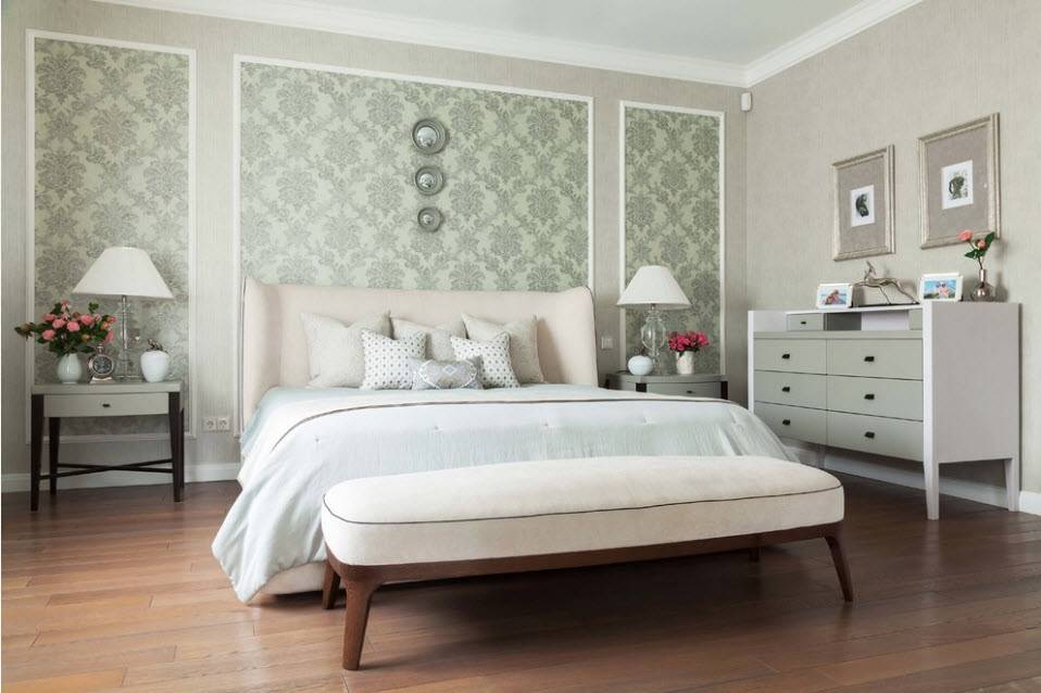- Пастельные тона в небольших помещениях и яркий крупный орнамент в большой по площади комнате.