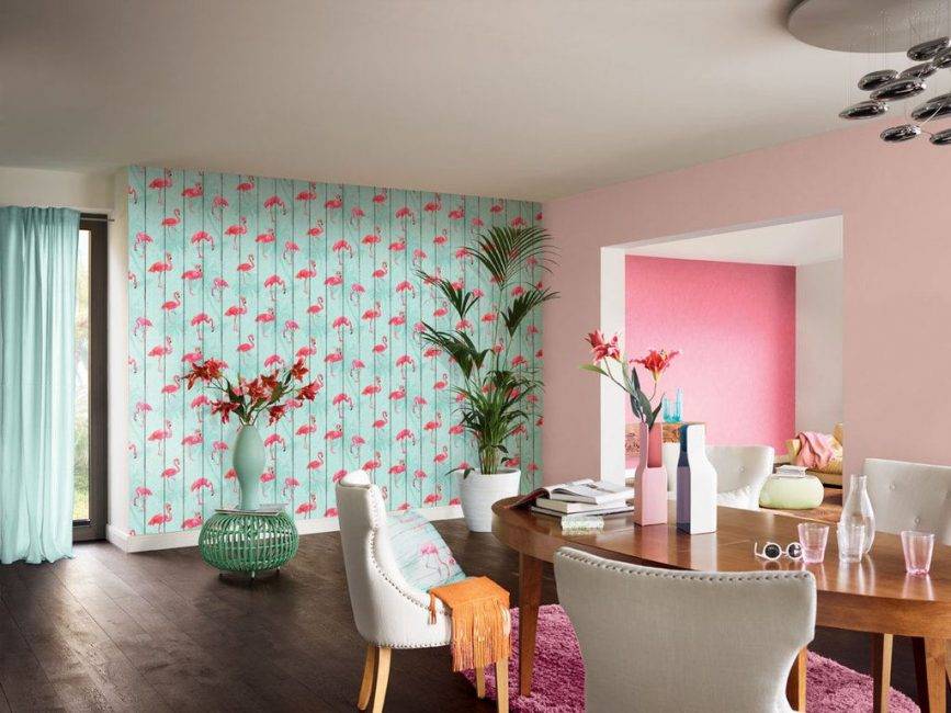 Комбинирование будет удачным, если правильно соединять узор, цвет и фактуру обоев.