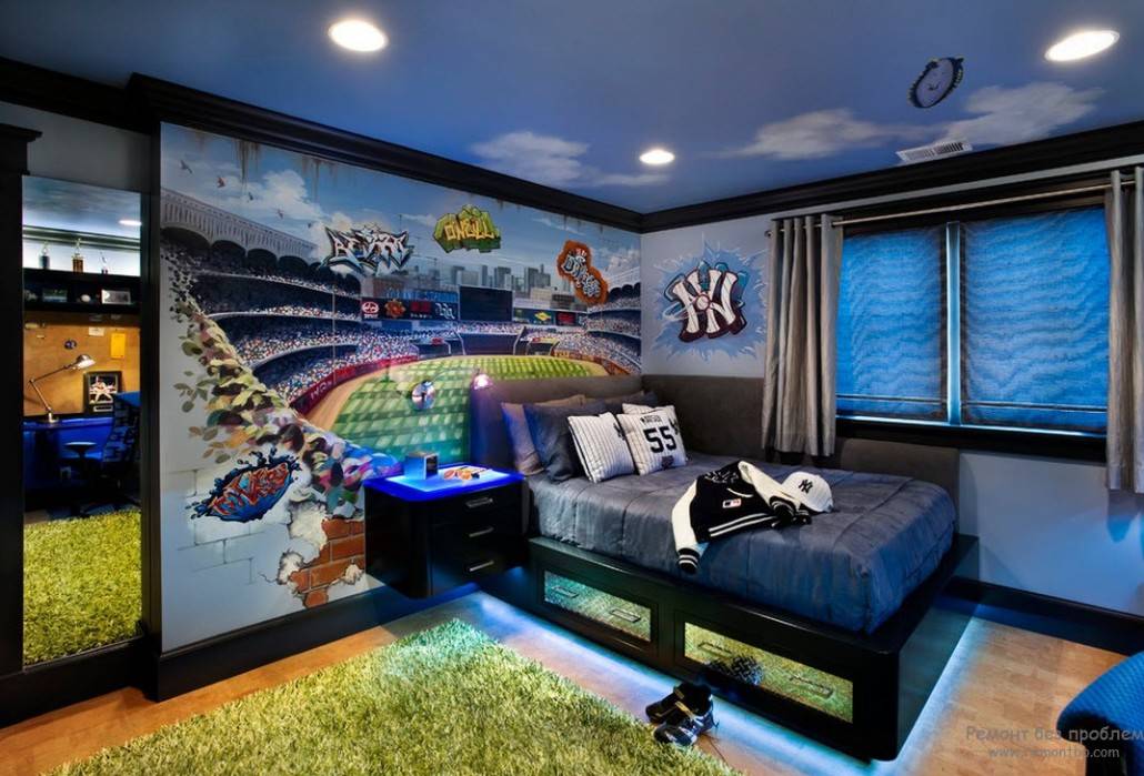 В семье растет маленький художник? Подростковая комната – место, где он может обрести свободу самовыражения. Предложите ему расписать или украсить граффити одну из стен. Такая композиция отлично в любой стиль, главное – придумать подходящий рисунок. В крайнем случае, неудачный эксперимент всегда можно спрятать под обоями.