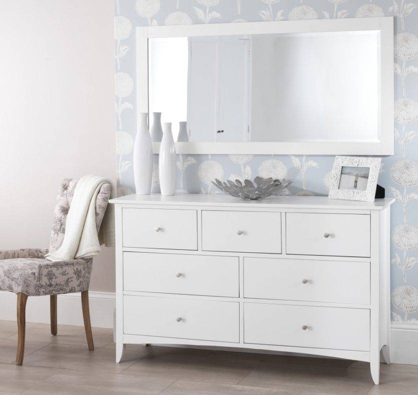 Этот стиль будет уместен в помещении любого размера. Распространенной моделью в спальне с таким дизайном считается комод с зеркалом. Здесь он исполняет роль столика и предмета хранения.