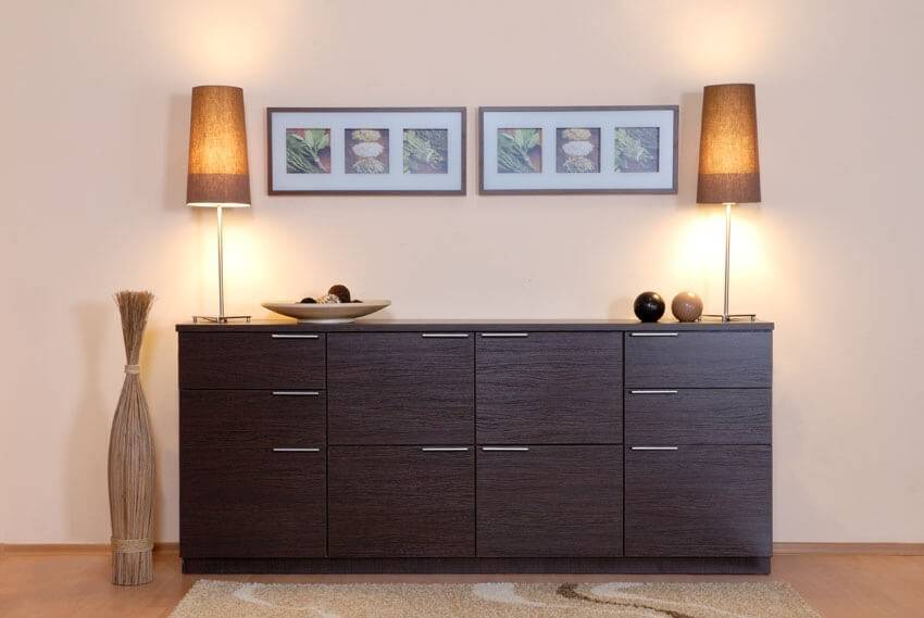 Комоды для гостиных имеют множество положительных свойств, на которые рекомендуется обратить внимание. Основное достоинство подобных изделий заключается в том, что их верхнюю часть можно использовать в качестве опоры для различных элементов интерьера комнаты