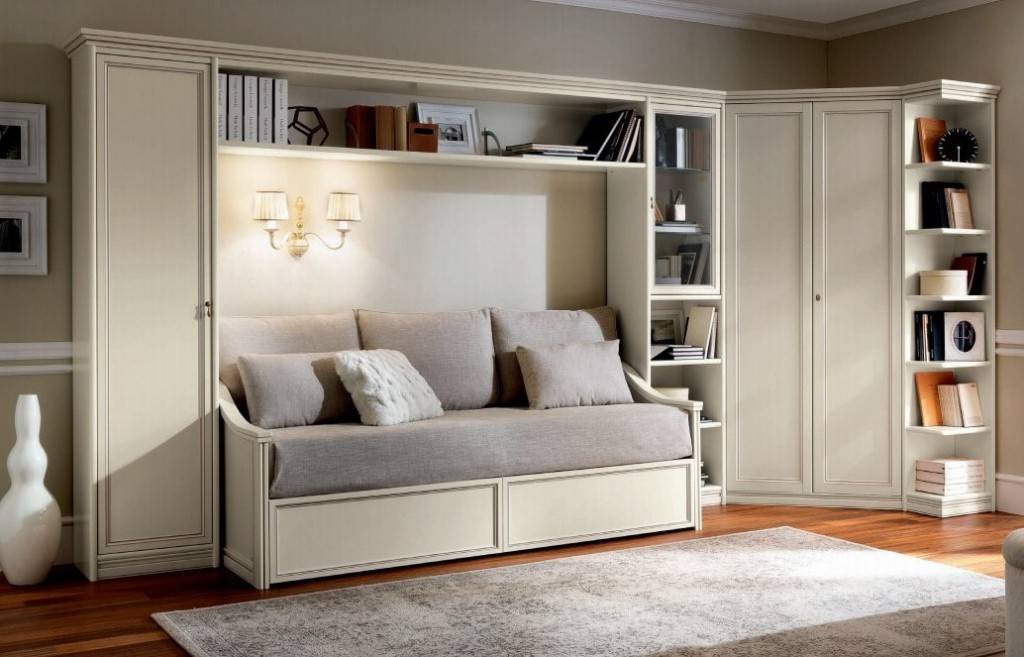 Данный вид мебели лучше устанавливать в малогабаритных квартирах, где каждый сантиметр на вес золота. Белый оттенок визуально расширяет пространство, делая площадь комнаты значительно больше.