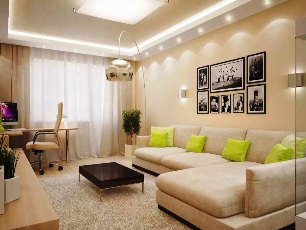 Чтобы удачно выбрать цвет гарнитура и сочетать его с интерьером гостиной, лучше приобретать мебель только после того, как отделка комнаты полностью завершена. Всегда эффектно смотрится модное направление монохром, когда обои и меблировка решены в одном тоне (например, серый, белый, бежевый), при этом контрастными акцентами служат аксессуары, диванные подушки, яркий декор на стенах.