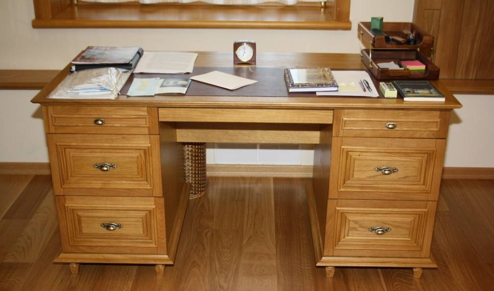- Приятные тактильные ощущения в процессе использования. Древесина имеет фактуру, к которой приятно прикасаться, материал не охлаждается так сильно, как металл и обеспечивает максимальный комфорт работы. Кроме того, человеку комфортно находиться на таком рабочем месте.