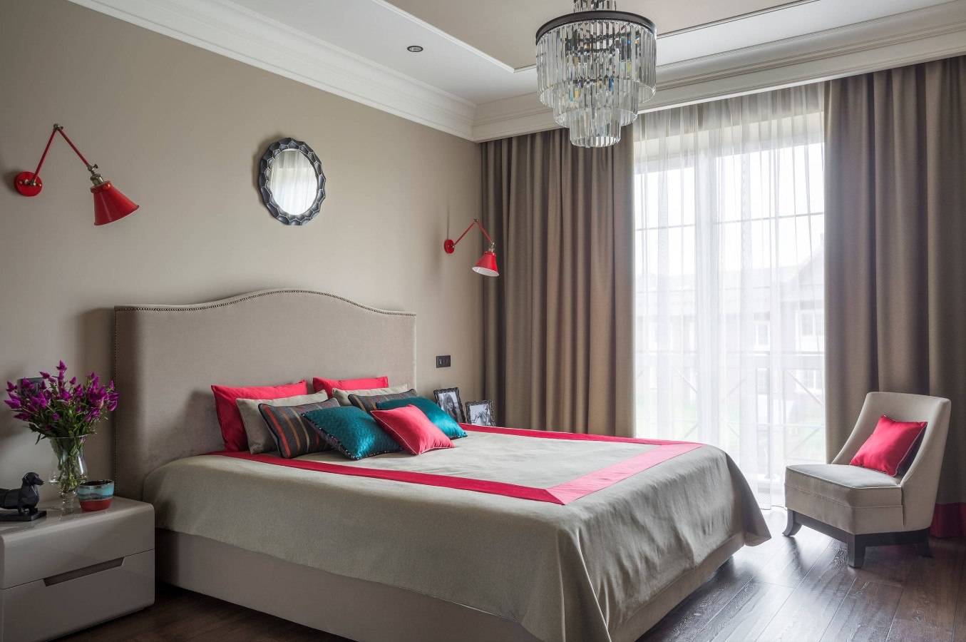 В этом случае хозяевам приходится находить идеальный компромисс в дизайнерском решении. В зависимости от темперамента можно подобрать хорошие варианты. Не стоит, однако, забывать о влиянии цвета на сон и отдых. Более сдержанные тона, сочетания бежевого цвета в интерьере, бирюзового, лавандового, изумрудного и лазурного дадут ощущение полного релакса в спальне и в то же время будут гармонично смотреться в гостиной.