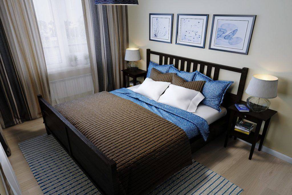 История с голубым очень похожа с мятной, но только с приятной теплой и уютной ноткой, которую задает коричневый цвет. Такое сочетание цветов можно использовать как для зала, так и для спальни.