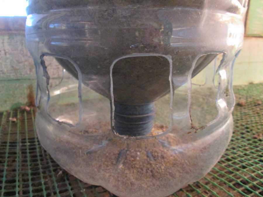 - Проще всего ухаживать за конструкциями бункерного типа. Они нужны для насыпки зерна, а также сухих комбинированных смесей. Чаще всего общий размер бункера рассчитывается на суточный запас корма. Снизу конструкции устанавливается специальный лоток, в который пища сыпется из бункера по мере питания птицы.