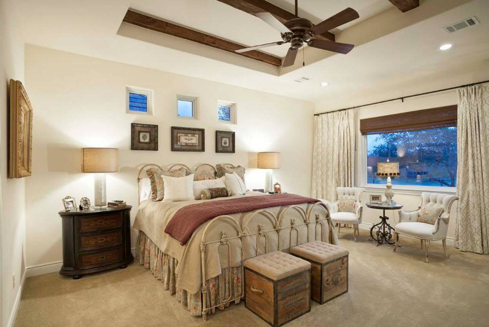 В то же время нужно понимать, что чем больше различных штор применяется одновременно, тем сложнее сделать так, чтобы они гармонично сочетались между собой и интерьером спальни. Если на эксперименты нет времени и желаний, то можно ограничиться римскими или рулонными шторами светлого оттенка с небольшим ламбрекеном в верхней части. Также можно использовать жалюзи, имитирующие деревянную поверхность, что позволит сохранить тепло и уют внутри спальни.