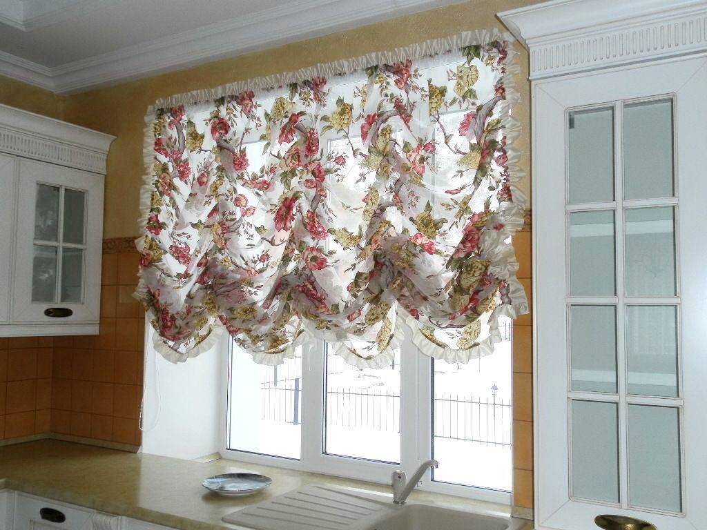 Прованс. Укороченные занавески в этом стиле имеют цветочный или мелкий разноцветный узор, украшены рюшами, бантами и прочими аксессуарами.