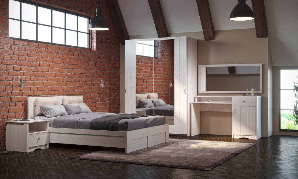 Мебель для спальни в стиле лофт с серым оттенком разбавит мрачность основных цветов