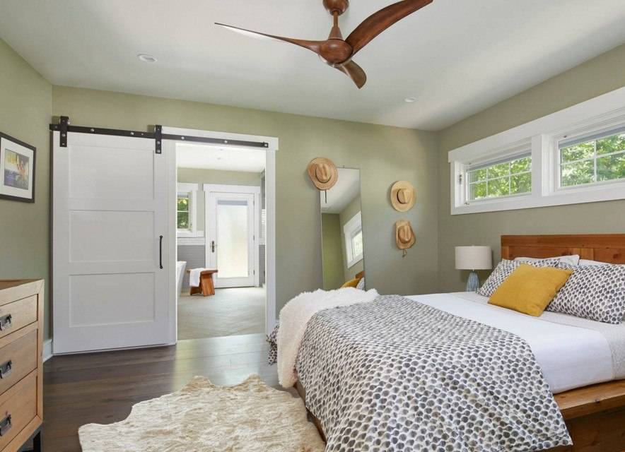 Гостиная и спальня отличаются по функционалу, вследствие этого немаловажно предусмотреть оптимальные условия пребывания в каждой из областей. Самое лёгкое средство разделения пространства на данные зоны – установка раздвижных дверей