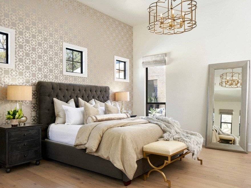 Кроме того, золото органично сочетается с бежевыми тонами в спальне, бордовыми, коричневыми и даже с черным цветом.