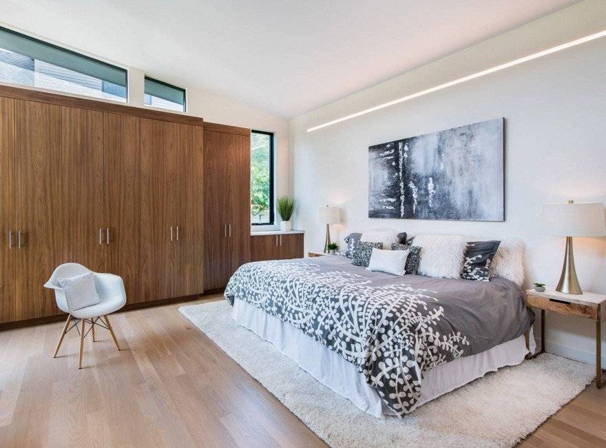 Все люди разные, кто-то хранит одежду на напольной вешалке, кто-то использует комод или тумбы. Традиционный вариант — обычный шкаф, к нему стоит присмотреться. Стильные шкафы в спальню выбирать достаточно непросто. Они выделяются, занимают много места, могут перебивать весь дизайн.