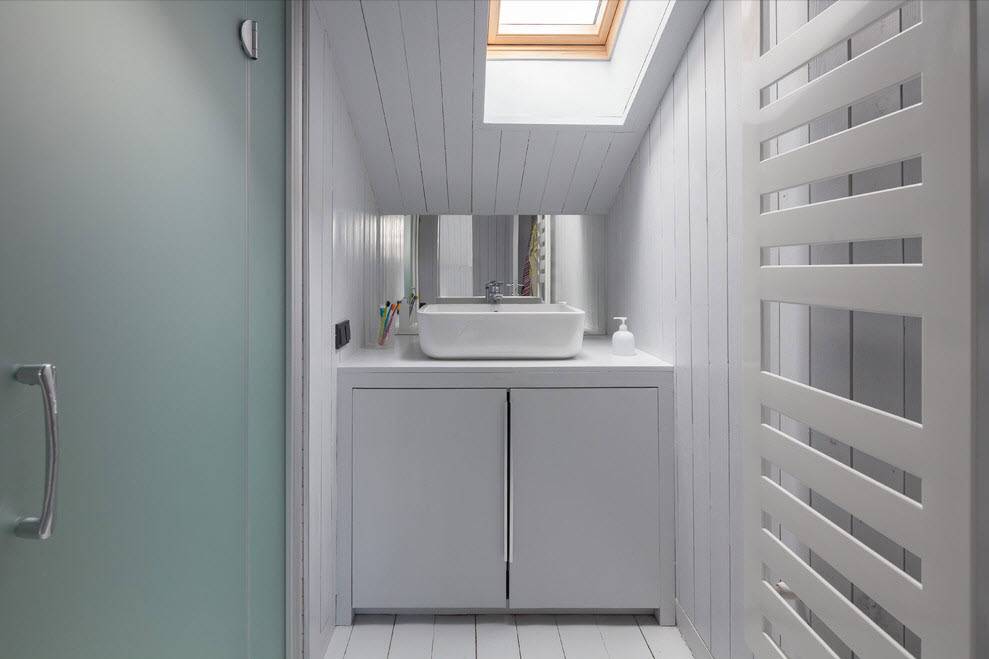 Хотя внешне дом кажется достаточно закрытым, внутри него очень много естественного света, благодаря мансардным окнам и ставням, которые в любой момент можно открыть.