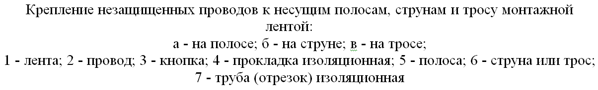 - Провод или кабель прикрепляется к струне монтажной лентой К-226 или ее аналогом.