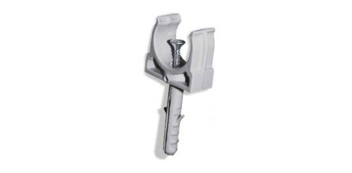 дюбель-хомут – пластиковая петля с ножками, на которых по бокам имеются шипы. В зависимости от размера и формы петли, в него можно заложить круглый или плоский кабель. Для этого его протягивают через головку петли, а сложенные вместе ножки забивают в просверлённое перфоратором отверстие. Расположенные под углом шипы упираются в стенки отверстия и надёжно удерживают крепёж в нем;