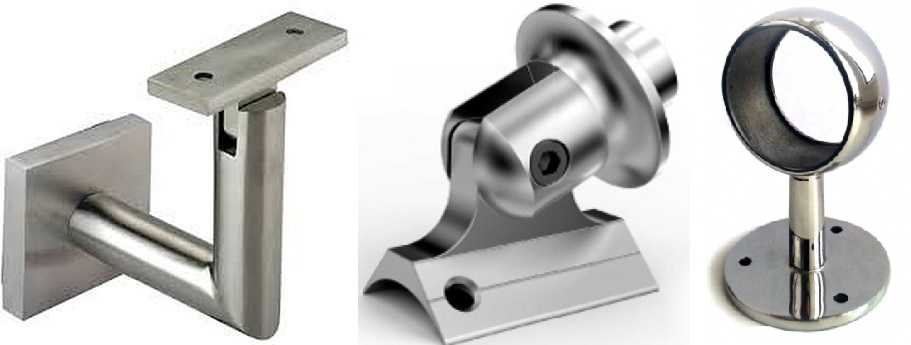 Вообще, сборка поручней из металлических (нержавеющих, никелированных, хромированных) труб похожа на конструктор. Есть трубы разного диаметра, декоративные элементы к ним, и целый набор различных креплений. Из всех этих деталей и собираются перила. Потому они и названы «сборными». Решая как крепить поручни к металлическим балясинам/столбам/стойкам, ваша задача — выбрать те элементы, которое лучше остальных подходит для решения вашей задачи или больше других вам нравится.