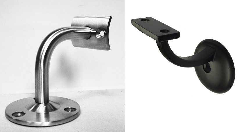 Есть кронштейны для настенного крепления поручней с разным углом наклона. Выбирают их исходя из собственных представлений об удобстве и планируемой высоте опоры. Еще встречаются телескопические модели, которые позволяют задать расстояние до стены и/или угол наклона. Еще есть торцевые настенные кронштейны, которые одновременно с фиксацией краев поручня еще и декоративно их оформляют.