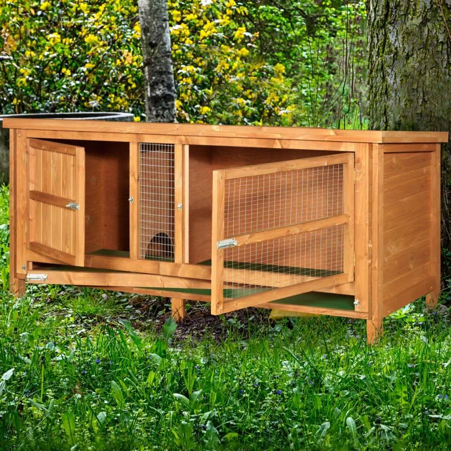 Чаще всего своими руками делают деревянный домик. Кроме этого, в нем сделаны дверки из очень мелкой сетки. Это делается для безопасности животного. Через нее кролик может смотреть наружу, но не может выбраться из своего домика. Практически любая древесина имеет хорошую термоизоляцию, а также защищает жары и холода. Но несмотря на все эти предпочтения, такой домик довольно тяжелый и поэтому плохо подойдет для использования внутри помещения.
