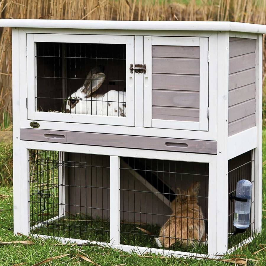 Многие выбирают для своих питомцев клетки в два этажа. На первом из них можно установить лоток для туалета, а на втором сделать спальное место. Кроме этого, оба этажа между собой соединяются широкой лестницей, по которой кролик сможет бегать с большим удовольствием.