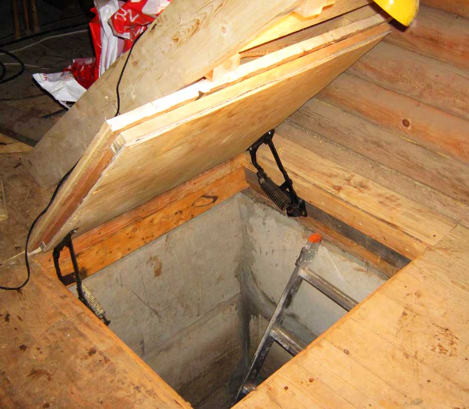 Вход должен иметь специальные опоры, на которые в дальнейшем будет укладываться ляда, и быть герметичным, иначе холод из подвала будет проникать в помещение. Для надежности и прочности, таких опор должно быть четыре. При выборе вида крышки, учтите ее вес, так как хрупким женским рукам будет не под силу открыть и удержать слишком тяжелый люк.