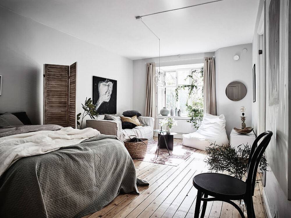 Экраны идеальны в однокомнатной квартире, потому что они очень гибкие. Вы можете переместить его в любую область, которую хотите закрыть из поля зрения, плюс вы также можете использовать его, чтобы повесить одежду или другие предметы.