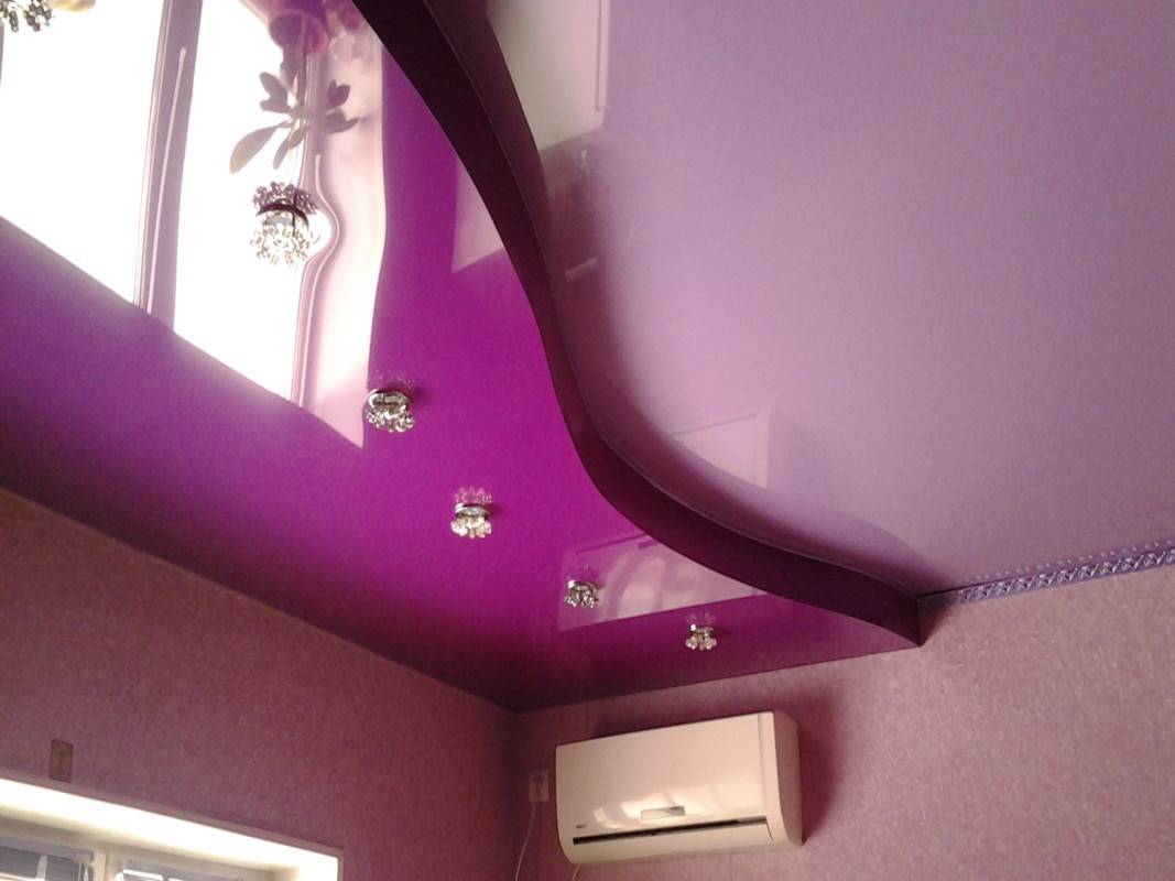Для кухонного помещения баклажан лучшим решением относительно потолочного покрытия станет натяжная конструкция. Если обои на стенах бежевые или белые, то потолок молочного цвета впишется в такой интерьер как нельзя лучше. Оригинально выглядит потолок типа «звездное небо» в сочетании с природным интерьером, но только на достаточной по площади кухне.