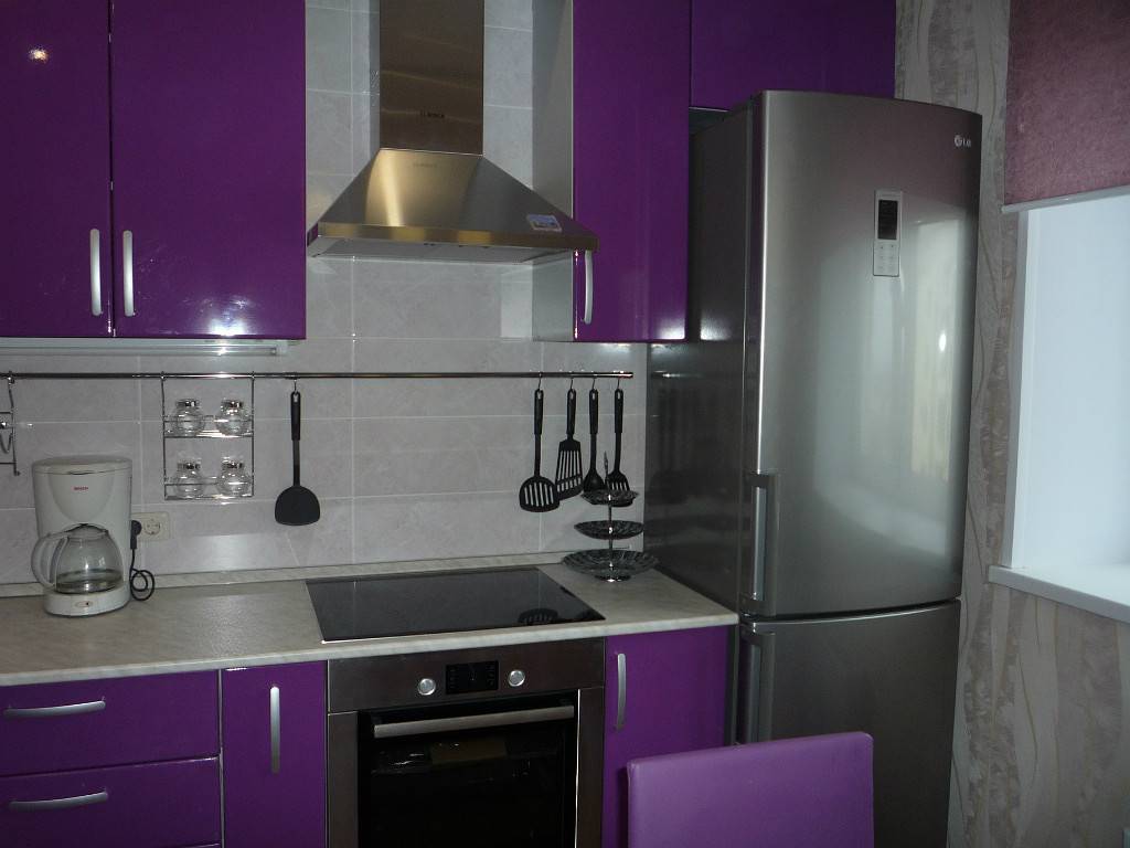 Как правило, в одном помещении всегда присутствует больше, чем два цвета. Не исключение и кухня в фиолетовых с белым тонах.