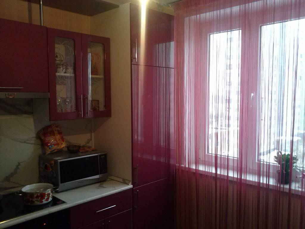 Руководствуйтесь общими правилами оформления интерьера: для просторных кухонь выбирайте матовые фасады, небольшая кухня цвета баклажан лучше выглядит в глянце.