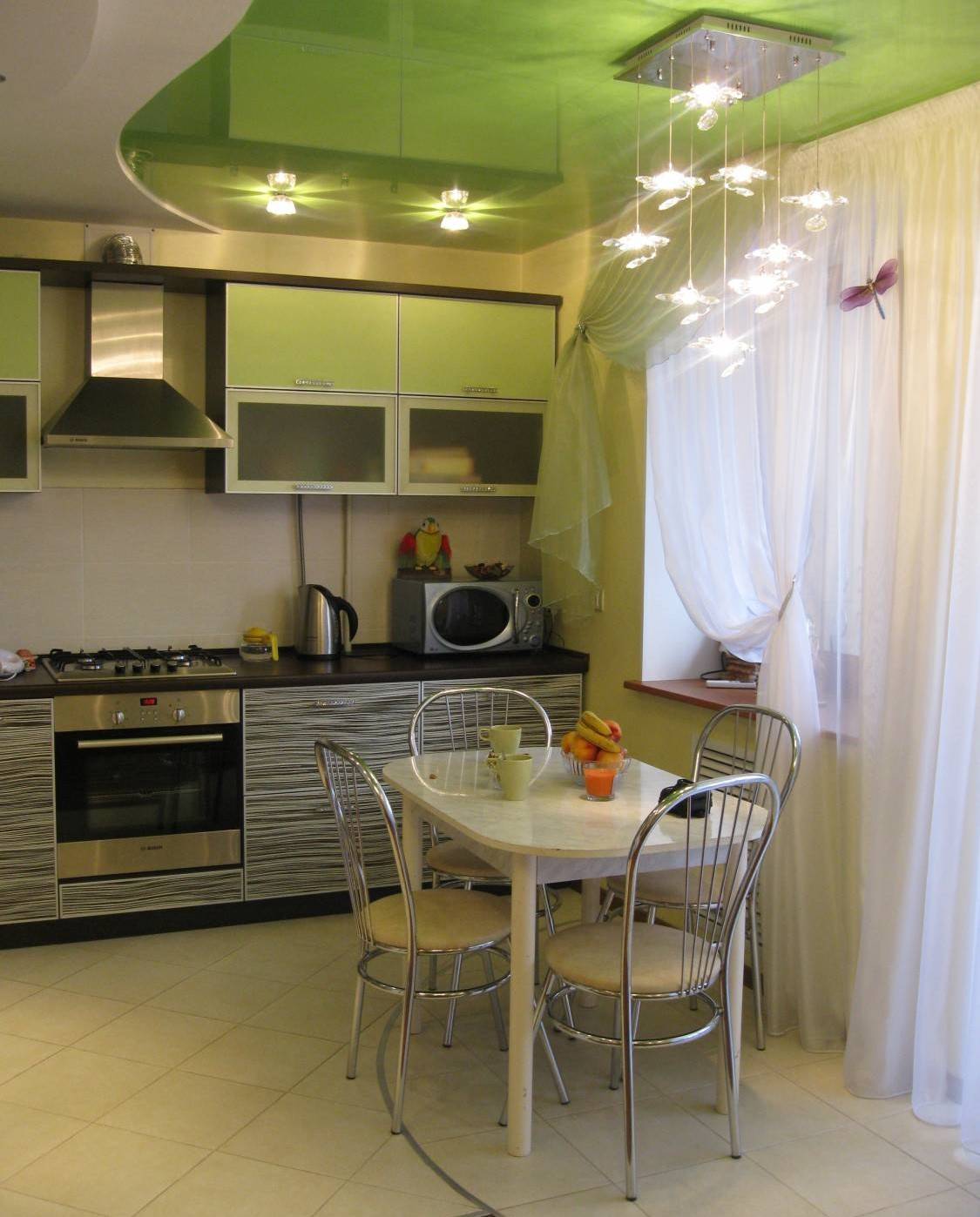 Этот вариант заставляет задуматься о том, как организовать столовую в гостиной. Если это невозможно, то вместо обеденного стола может быть использована одна из рабочих поверхностей. Оборудуя, таким образом, обеденное пространство, необходимо приобрести высокие барные стулья и уменьшить размеры напольных шкафов. Современные дизайнерские идеи маленькой кухни можно увидеть на фото, расположенные ниже.