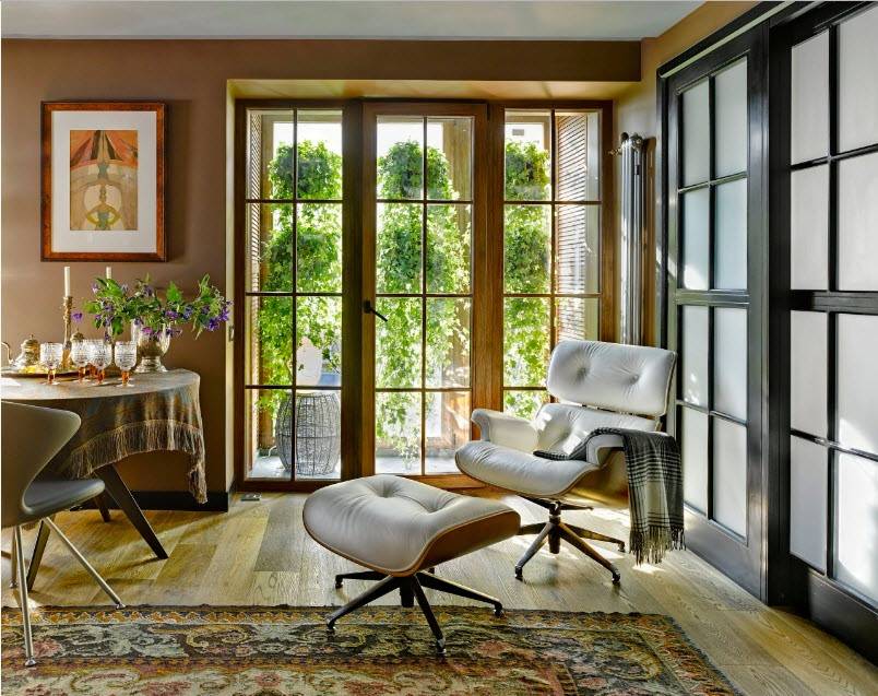 Отлично позволяют разграничить пространство французские окна. Они превосходно выглядят, расширяют пространство, делают комнату гораздо светлее.