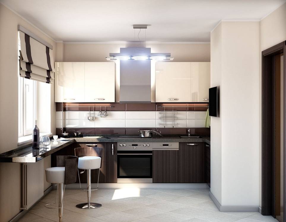 Злыми врагами маленьких кухонь являются полумрак и тьма, которые зрительно «съедают» пространство. Поэтому нужно максимально наполнить помещение как искусственным, так и естественным светом.